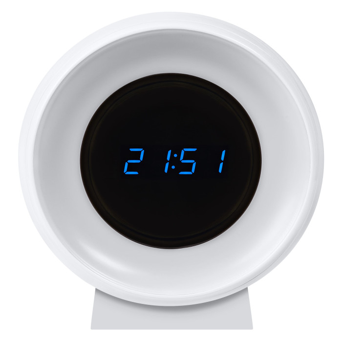 Світильник-нічник OSRAM Nightlux Clock поєднує LED-підсвічування та електронний годинник. Вбудований акумулятор дозволяє використовувати пристрій без підключення до мережі. Три режими колірної температури допомагають змінювати характер освітлення. Компактна конструкція розрахована на настільне розміщення.