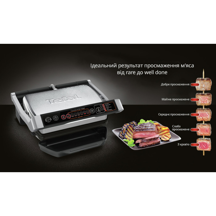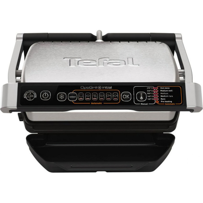 Гриль Tefal прижимной OptiGrill+ Initial 2000Вт, темп. режимов-5, съемные пластины, металл