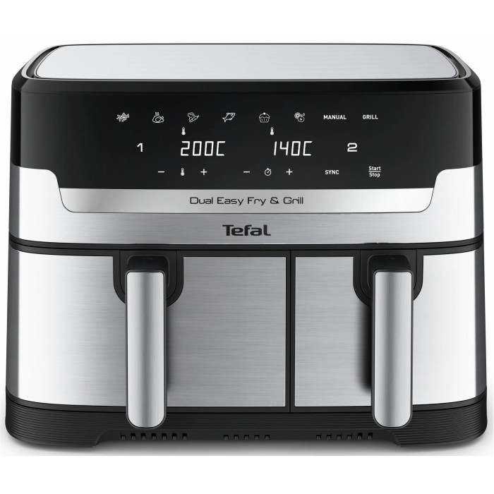 Мультипечь Tefal Dual EasyFry&Grill AirFryer, 2700Вт, чаша-5.2+3.1л, сенсорное управл., 2 чаши, гриль, пластик, серо-черный