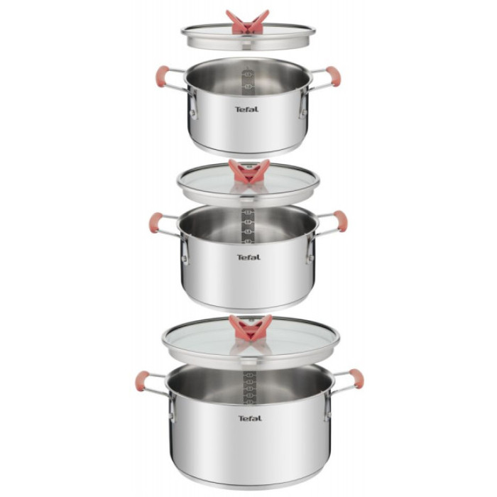 Набор посуды Tefal Opti Space, 6предметов, нержавеющая сталь, силикон, стекло