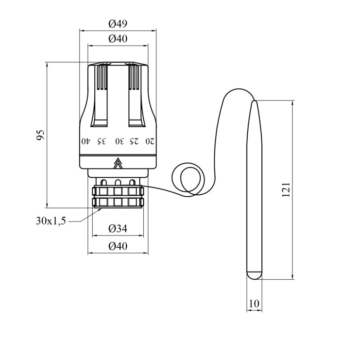 Термоголовка Karro M30x1.5 з виносним капіляром KR-2110 і занурювальним датчиком рідинного типу. З'єднується з датчиком мідною капілярною трубкою довжиною 2м. Термоголовка являє собою спеціальний механізм у системі опале... Читать далее...