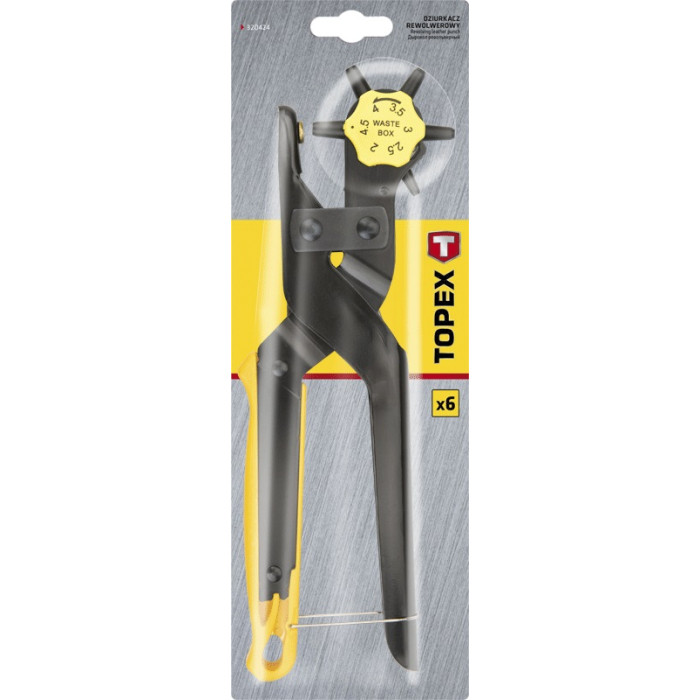 Дирокол револьверний TOPEX довжиною 240 мм і робочим діапазоном 2-4.5 мм. Завдяки твердим кінчикам пробивання отворів не вимагає зусиль. Ергономічне руків’я зручно міститься в долоні, що додає комфорту під час праці. Марка TOPEX адресована майстрам, які займаються дрібним ремонтом.