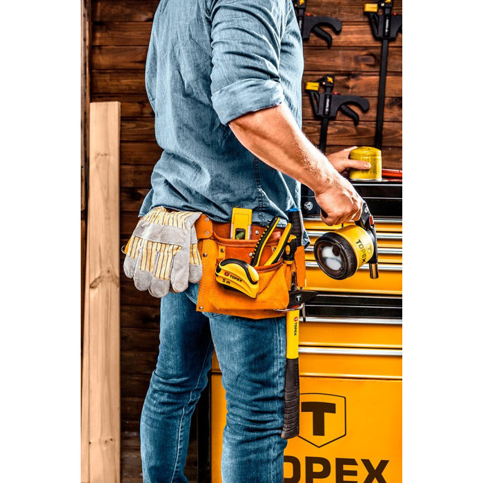 Пояс для инструмента TOPEX, 11 отделений, металлический держатель молотка, кожа