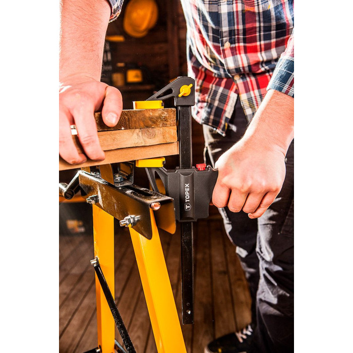 Стяжка автоматична TOPEX є універсальною стяжкою з можливістю використання як скоба, розпірка тощо. Корисна як для професіоналів, так і дрібних ремонтно-будівельних робіт. Пістолетне руків’я, виготовлене з високоякісного пластику, профільоване для більшої зручності користування. Додатково має систему швидкого пересування, що спрощує роботу інструментом. Сертифікати TÜV, GS є гарантією надійності продукту. Марка TOPEX адресована майстрам, які займаються дрібним ремонтом.