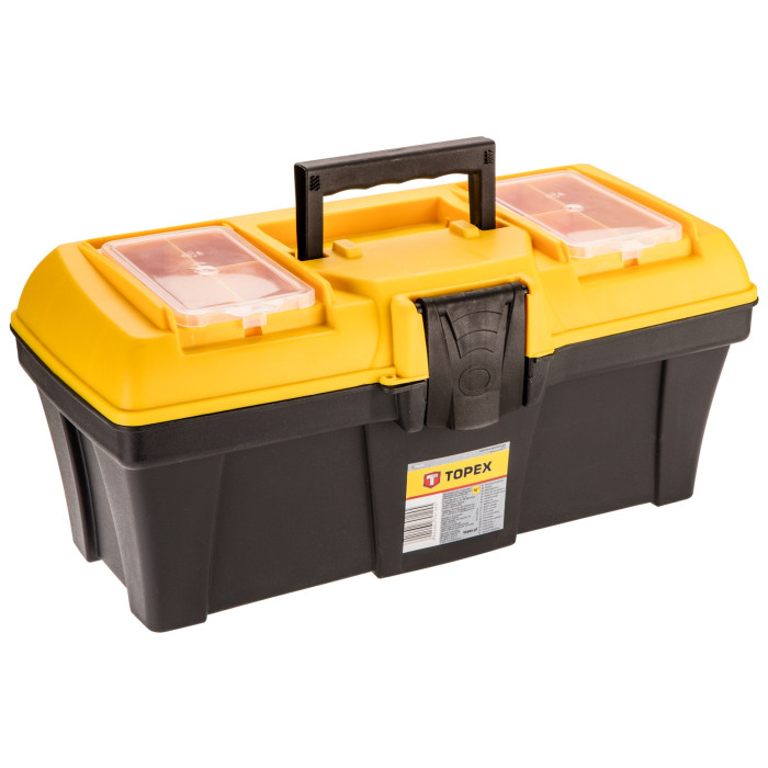 Ящик для інструменту TOPEX - це легкий і зручний ящик для інструменту. Виготовлений з міцної пластмаси. З двома практичними органайзерами для зберігання дрібних елементів і зручною ручкою для перенесення. Бренд TOPEX призначений для домашніх майстрів.