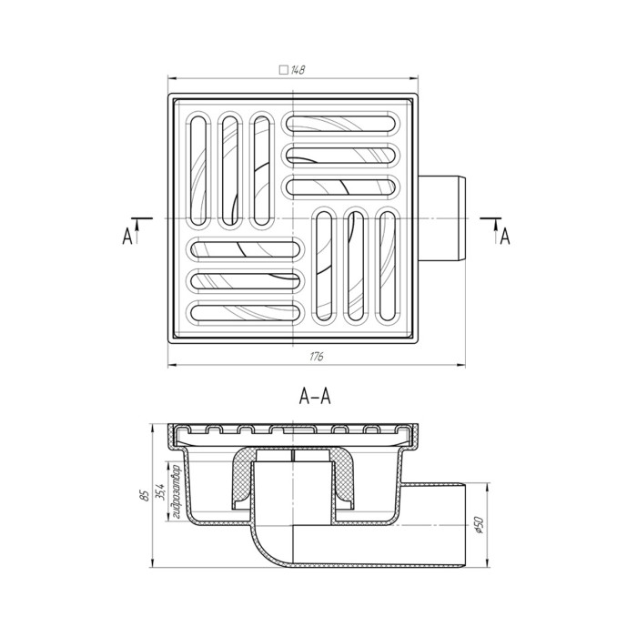 Трап ANIplast з горизонтальним випуском 50 мм, з нержавіючою решіткою 15х15 см TA5112EU