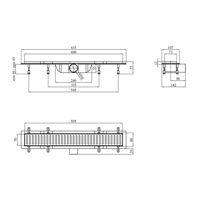 З регулюванням висоти: 50 - 65 мм.