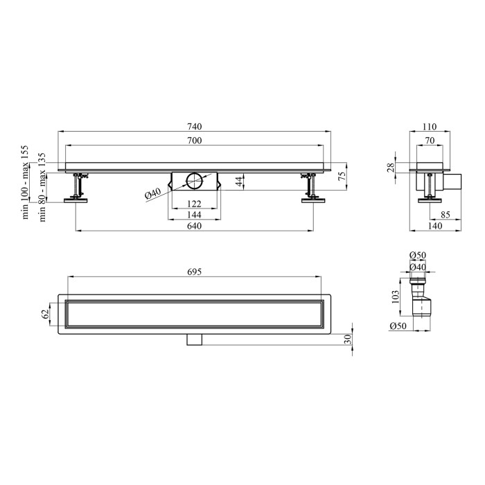Трап лінійний Kroner KRP Eifel F70 Fliese