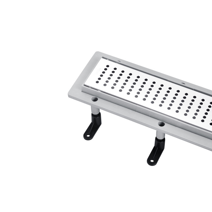 Лінійний трап Kroner KRP Harz L70 Löcher з декоративною решіткою розміром 700х73 мм з нержавіючої сталі, виконує функцію водовідведення з душових кабін без застосування душового піддона, на рівні з підлогою. Корпус трапа... Читать далее...