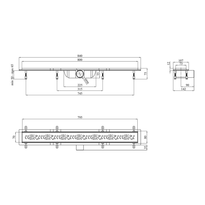 Лінійний трап Kroner KRP Harz M80 Muster з декоративною решіткою розміром 800х73 мм з нержавіючої сталі, виконує функцію водовідведення з душових кабін без застосування душового піддона, на рівні з підлогою. Корпус трапа виготовлений зі стійкого до агресивних середовищ міцного пластику. Також душовий трап має сухий гідрозатвор діаметром 50 мм, який надійно захистить від проникнення неприємних запахів з каналізаційних труб. Конструкція лотка дає можливість без зайвих труднощів почистити виріб.