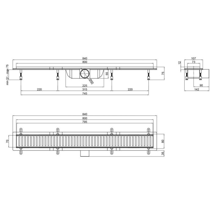 Линейный трап Qtap Dry FA304-800 позволит создать душ мечты без бортов вровень с полом. Такой душ выглядит стильно и привлекательно. Трап состоит из горизонтального отвода воды и прямоугольной узкой накладки, которая задерживает мусор. Она выполнена в виде пластины с удлиненными овальными отверстиями на одинаковом расстоянии друг от друга. Пропускная способность такого трапа в разы выше, чем у точечных, и вода не будет собираться даже при использовании сильного напора.