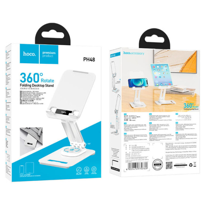 Тримач для мобільного HOCO PH48 Fun dual axis 360 rotating tablet desktop holder White