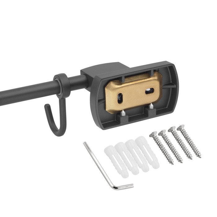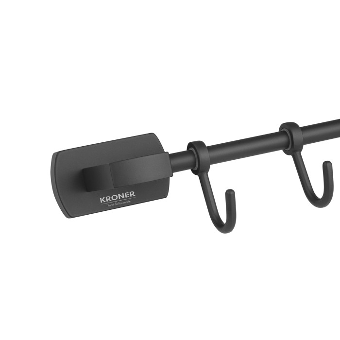Тримач для рушників Kroner KRM Graz - GRP95618-4 — сучасний і стильний аксесуар для ванної кімнати, що поєднує функціональність і вишуканий дизайн. Виготовлений з міцного металу з матовим покриттям кольору графіт, стійким до вологи, корозії та подряпин. Забезпечує зручне розміщення рушників і надає інтер'єру елегантний акцент.