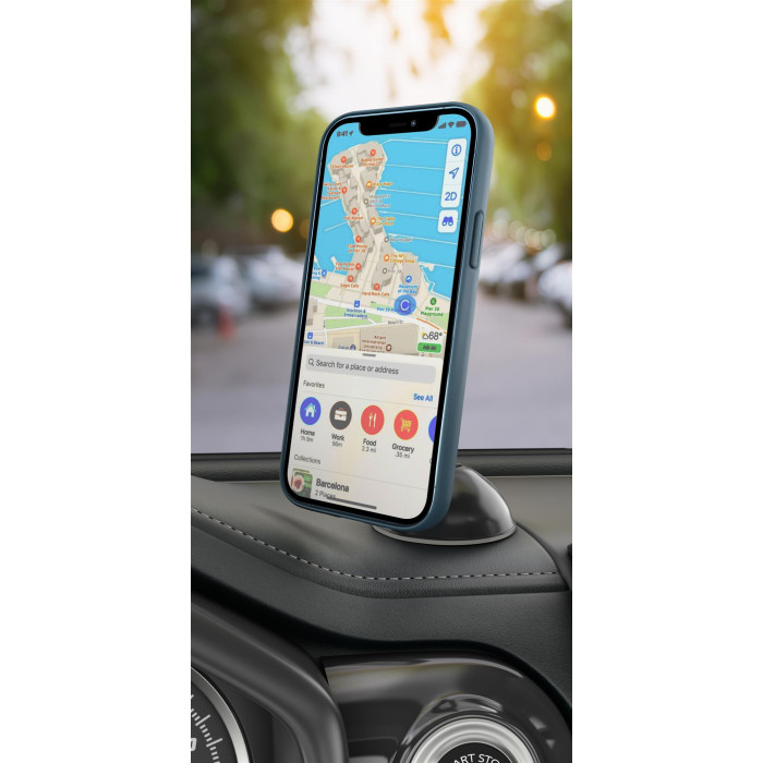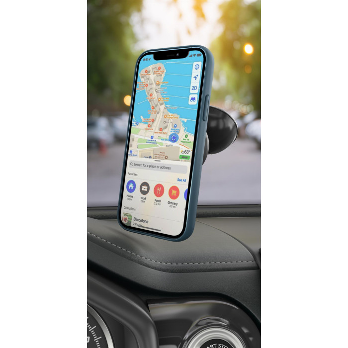 Силіконова присоска забезпечує надійну фіксацію на торпедо чи лобовому склі.