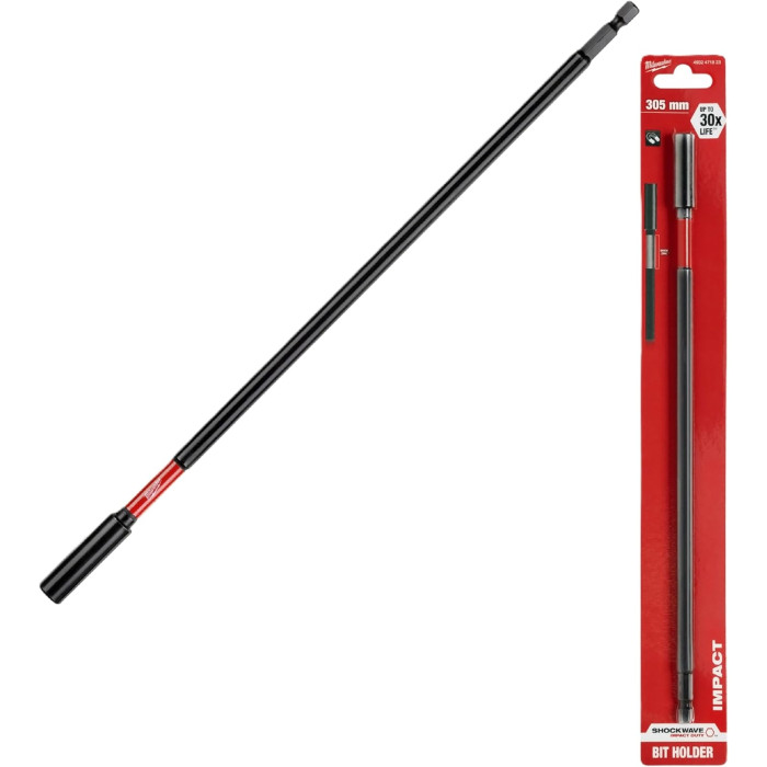 Магнітний універсальний тримач Milwaukee 1/4" Hex 152 мм забезпечує надійне утримання біти та зручний доступ до глибоко розташованих кріплень. Довга конструкція дозволяє працювати в нішах і вузьких місцях. Сумісний із шурупокрутами й ударними гайковертами.