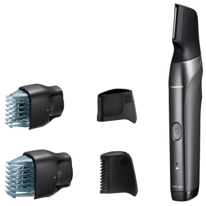 Тример Panasonic, для бороди, вусів, голови та тіла, мережа+акум., насадок-4, чохол, швидка зарядка, сірий