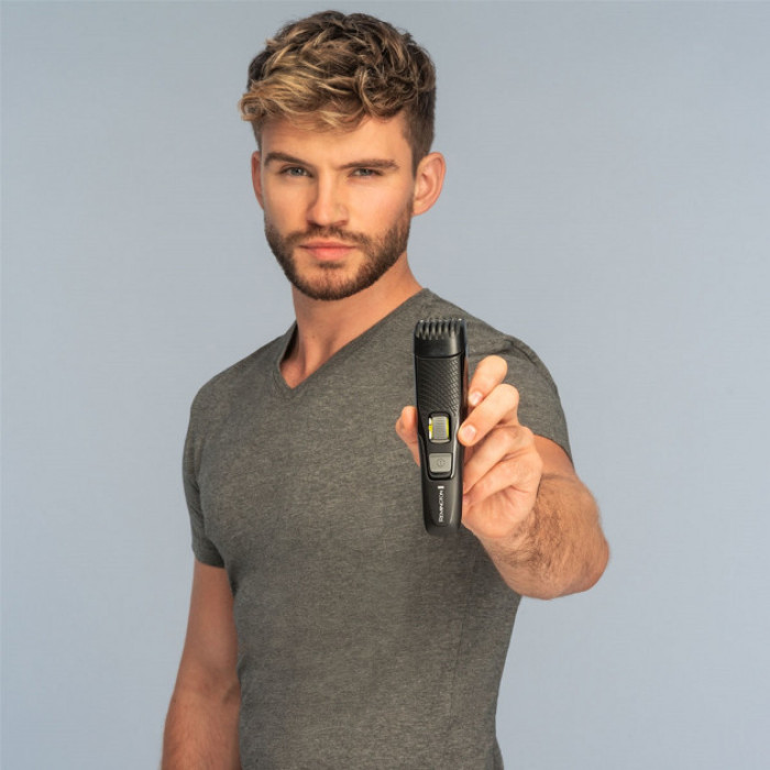 Час "Включити Своє Я" з новим тримером Remington Style Series B3. Інтуїтивне коліщатко регулювання довжини стрижки дозволяє вибрати з 17 точних варіантів установки довжини з легкістю і точністю. Комфортні леза, що самі заточуються, розроблені для гладкого ковзання і точних результатів стрижки.