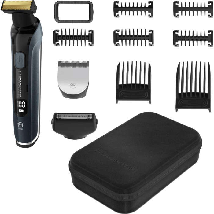 Тример Rowenta Forever Sharp Ultimate, для бороди, вусів, акум., насадок-10, 120 хв. використання, дисплей, сталь, синій