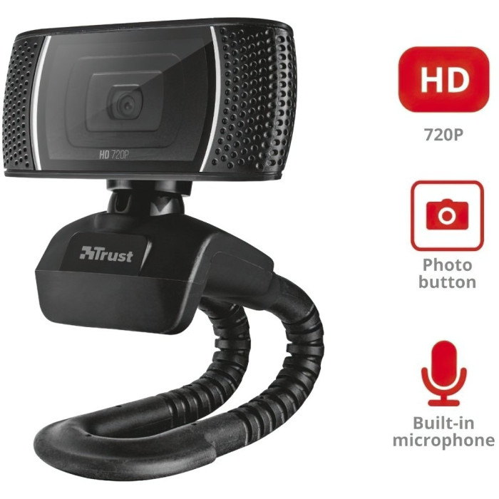 Вебкамера Trust Trino, HD, 30 fps, fixed focus, черный