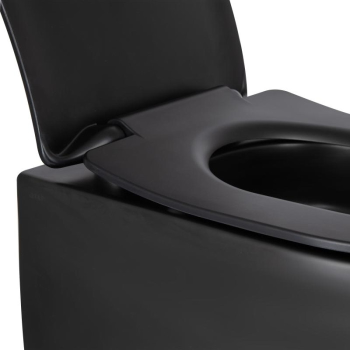 Подвесной унитаз Qtap Taurus безободочный с сиденьем QT2433084EUQMB имеет современный дизайн, который подойдет к любому интерьеру ванной комнаты. Изделие имеет уникальную бесшумную технологию смыва Ultra Quiet. Сидение с функцией soft close опускается плавно и бесшумно. Изделие выполнено из керамики в черном матовом цвете и покрыто эмалью для защиты от влаги. Унитаз без ободка, поэтому лишняя грязь не скапливается и изделие быстро моется. Благодаря подвесной конструкции уборка не доставит лишних хлопот.