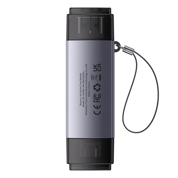 USB-хаб Baseus Lite Series USB-A & Type-C to SD/TF Card Reader Grey