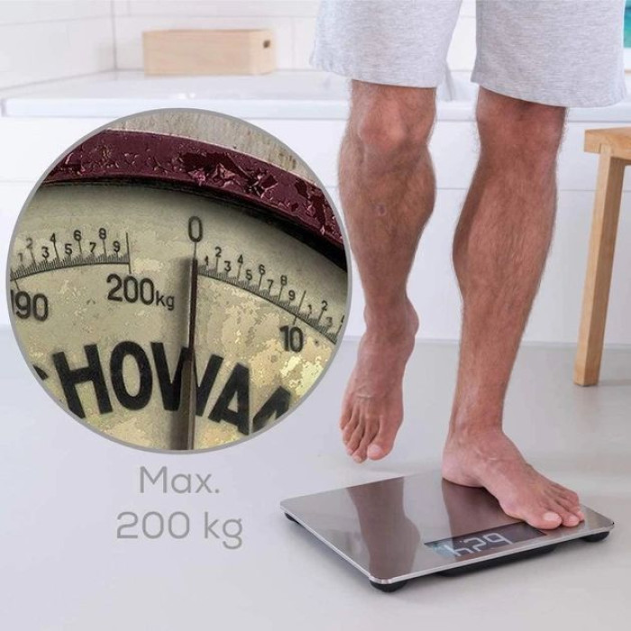 Ваги Beurer підлогові, 200кг, товщина 8мм, аnti-fingerprint, AAAx3 в комплекті, скло/сталь, сірий