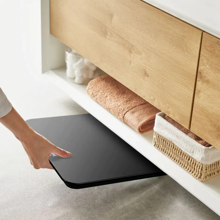 Тонкий дизайн зі стильною скляною платформою ідеально підходить для зберігання, коли ваги не використовуються.