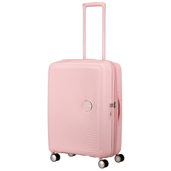 Валіза American Tourister, Soundbox, поліпропілен, середня, 67см, 71.5/81л, TSA, 4 колеса, EXP, пастельно-рожевий