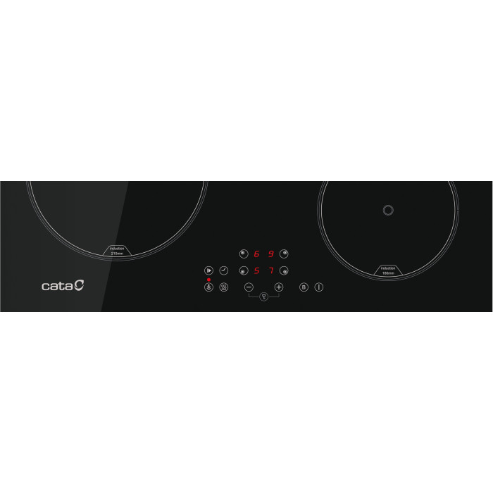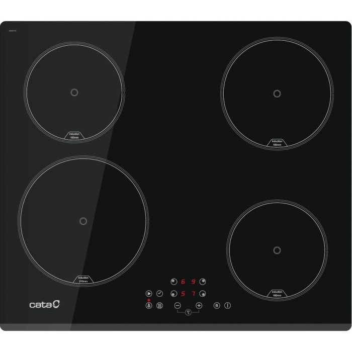 Cata IB 6324E2 BK — 60-см індукційна варильна панель з чорного склокерамічного скла, 4 зони нагріву (2×18 см, 2×21 см). Сенсорне керування Slider, 9 рівнів потужності, таймер, захист від дітей, індикатор залишкового тепла. Сумісність з усіма типами посуду для індукції, швидке нагрівання, легке чищення. Надійне іспанське рішення для сучасної кухні.