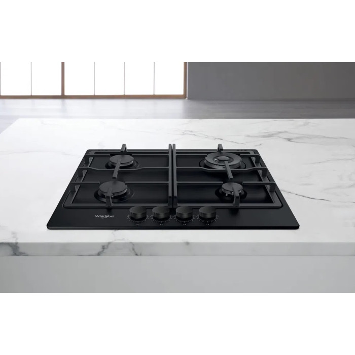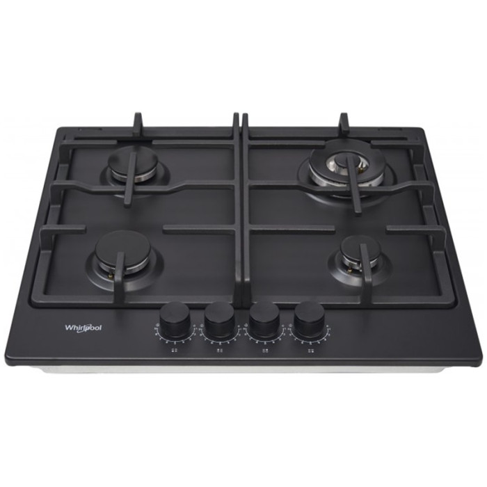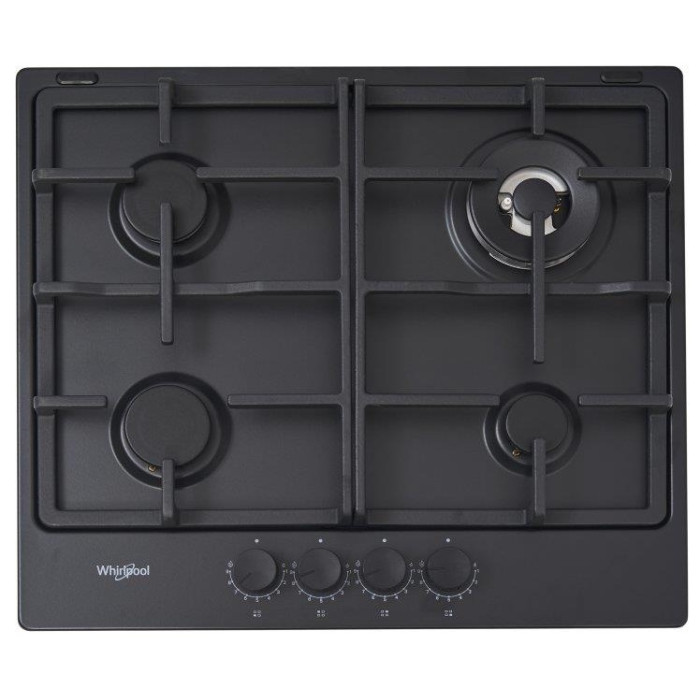 Варильна поверхня Whirlpool газова, 60см, чавун, конфорка з подвійним рядом полум'я, чорний