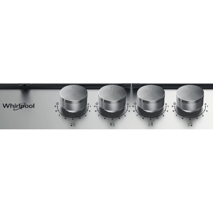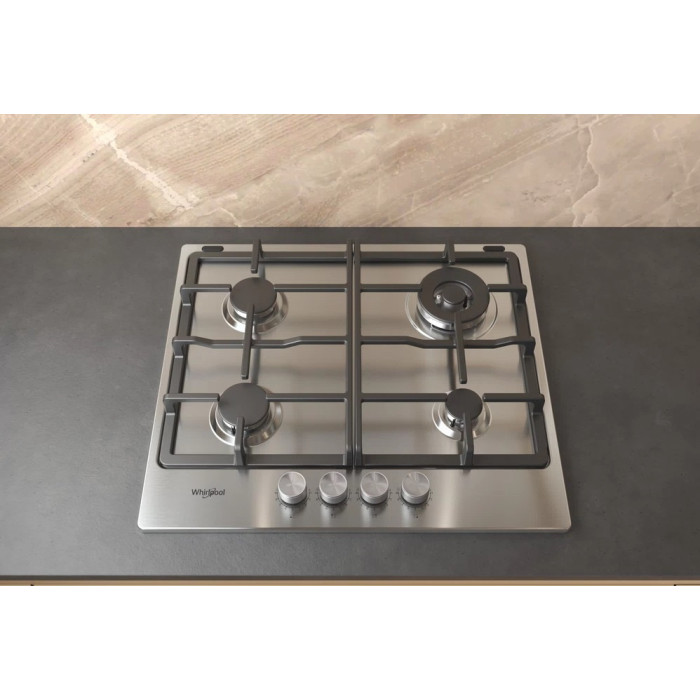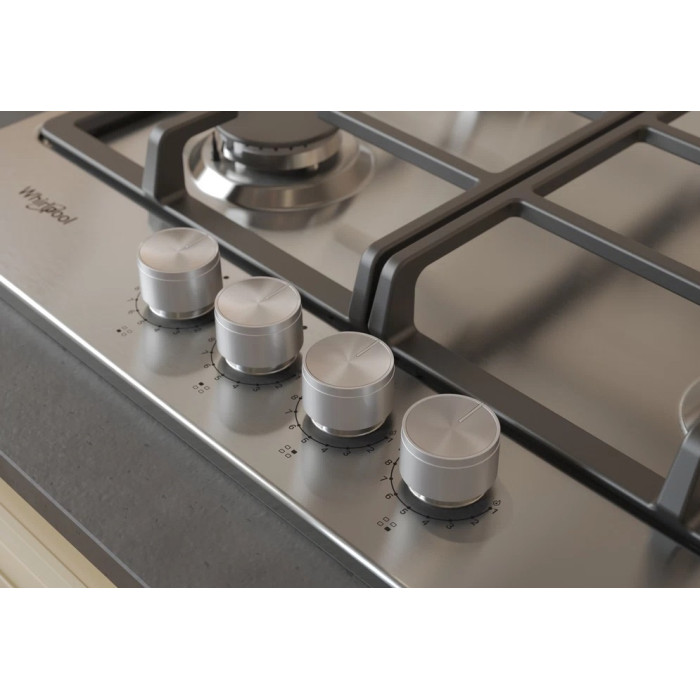 Варильна поверхня Whirlpool газова, 60см, чавун, конфорка з подвійним рядом полум'я, нерж