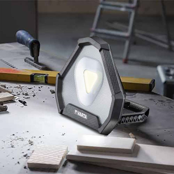 Довговічний світильник (прожектор) Varta з нової серії WORK FLEX Посилений корпус, стійкий до погодних умов, ударів і падінь з висоти до 2 метрів.