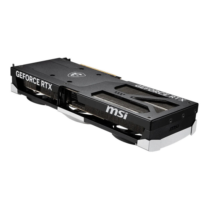 Відеокарта MSI GeForce RTX 5080 16G VENTUS 3X OC побудована на архітектурі Blackwell з 16 ГБ GDDR7-пам’яті на 256-бітній шині та базовою частотою ядра 2655 МГц. Система охолодження з трьома вентиляторами та великим радіатором ефективно відводить тепло при навантаженні, а займає лише 2,5 слоти. Карта підтримує PCI-Express 5.0, оснащена виходами HDMI та трьома DisplayPort для роботи з роздільною здатністю до 7680×4320. Рекомендована потужність блока живлення – 850 Вт з 16-піновим конектором.