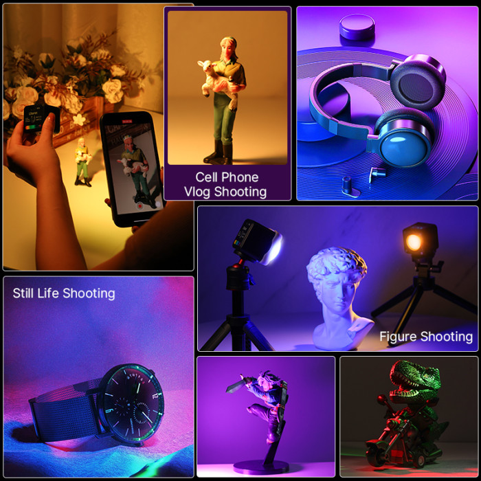 Накамерне світло Ulanzi L2 з 360 RGB відтінками і регулюванням насиченості від 0 до 100% на кожному відтінку, призначене для заливки сцени певним кольором, задавання фону-настрою або ж для класичного підсвічування слабкоосвітлених зон.КРІПЛЕННЯКорпус Ulanzi L2 RGB обладнаний кріпленнями 1/4 (для встановлення на штатив, стійку) і магнітним кріпленням (фіксується до будь-якої металевої поверхні).ДИСПЛЕЙНакамерне світло Ulanzi L2 RGB обладнане OLED HD дисплеєм, який призначено для комфортного керування і вибору з 11 представлених сцен світлових ефектів.АВТОНОМНІСТЬМінівідеосвітло Ulanzi L2 обладнане ємнісним акумулятором 800 мА·год, якого досить на 240 хвилин безперервного світіння на мінімальній яскравості або на 65 хвилин за максимального налаштування рівної 1000 люксів на відстані 50 см.