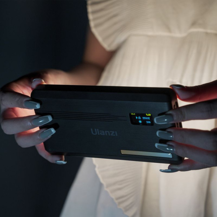 зазначеному діапазоні.OLED ЕКРАННа задній частині лампи Ulanzi VL200 розташований OLED екран на який виводиться вся необхідна інформація: яскравість в процентах, температура світла в Кельвінах, заряд акумулятора.АКУМУЛЯТОРАкумулятор великої ємності 5000мАч підтримує силу струму зарядки 2А через порт Туре-С і надає живлення на 2 години при максимальній яскравості або на 15 годин при мінімальній.