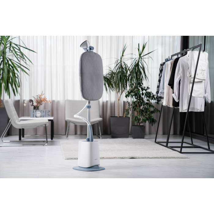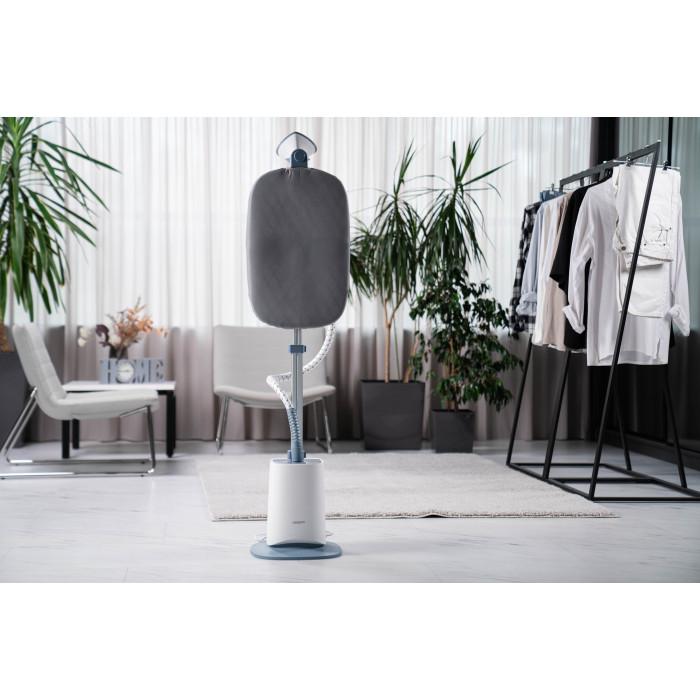 Вертикальний відпарювач ARDESTO IR-S26 є потужним пристроєм (1 785 Вт), який забезпечує тривалу автономну роботу. Передбачено великий резервуар для води ємністю 2 600 мл. Три режими подавання пари адаптовано до різних тканин, а подвійна стійка, регульована за висотою (51,5–135 см), і багатофункціональний вішак забезпечують зручність використання. Постійне подавання пари до 60 г/хв і готовність до роботи за 45 с роблять його швидким і ефективним. Стильний дизайн біло-сірого кольору доповнено ефективною функціональністю, як-от термостійкий шланг, вбудовані колеса для переміщення та щітка для тканини (в комплектованні). Відпарювач оснащено підошвою з нержавіючої сталі та захистом від перегрівання.