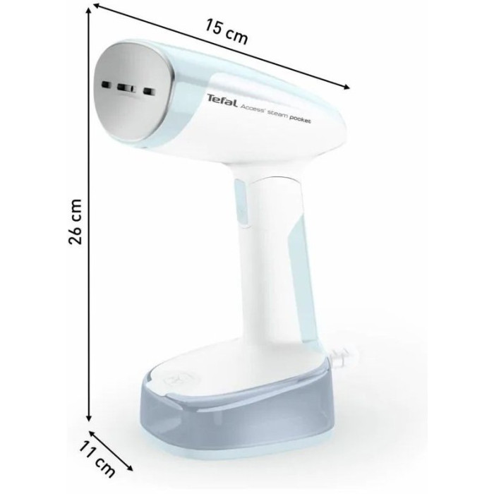 Відпарювач Tefal компактний Access Steam Pocket, 1300Вт, постійна пара - 20гр, біло-блакитний