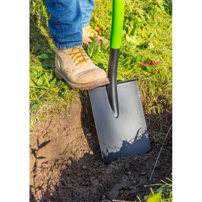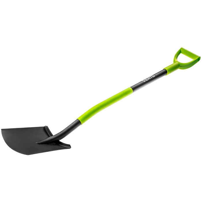 Проста лопата Verto, повна довжина 1250 мм. Основне призначення: для садових і будівельних робіт. Робоча частина з високоякісної загартованої сталі, загострена. Держак з профільованої сталевої трубки з пластмасовим покриттям, що забезпечує надійне захоплення. Підвищений комфорт роботи забезпечує спеціальна ергономічна форма черенка, а також стабільно зафіксована в долоні пластмасова ручка.
