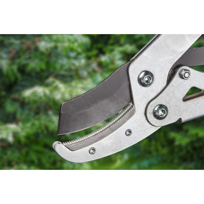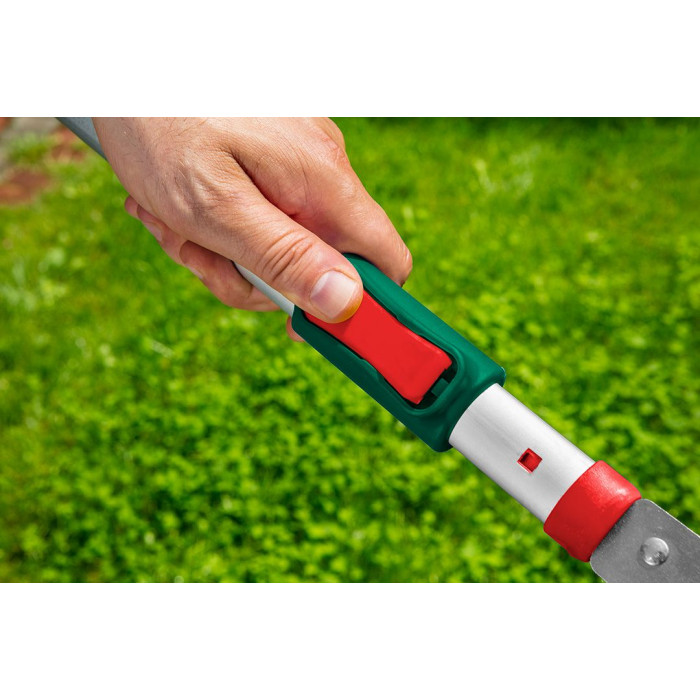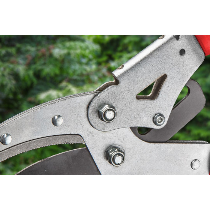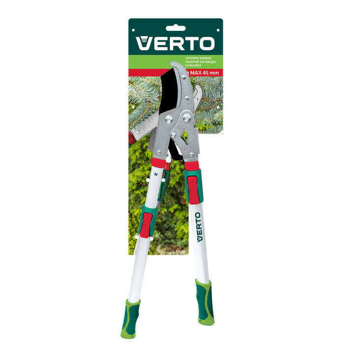 Сучкорез с наковальней телескопический VERTO (арт. 15G259) длиной 670-970 мм и диаметром резки до 45 мм. Предназначен для резки тонких и толстых веток. Лезвия покрыты тефлоновым покрытием, которое обеспечивает защиту от коррозии. Дополнительным преимуществом является передача, которая уменьшает усилие, необходимое для резки, на 30% и алюминиевые плечи, которые оптимизируют вес инструмента. Телескопические плечи увеличивают расстояние, на котором можно работать инструментом. Эргономичная рукоятка, покрытая противоскользящим материалом, обеспечивает безопасность и комфорт во время эксплуатации.