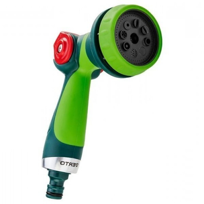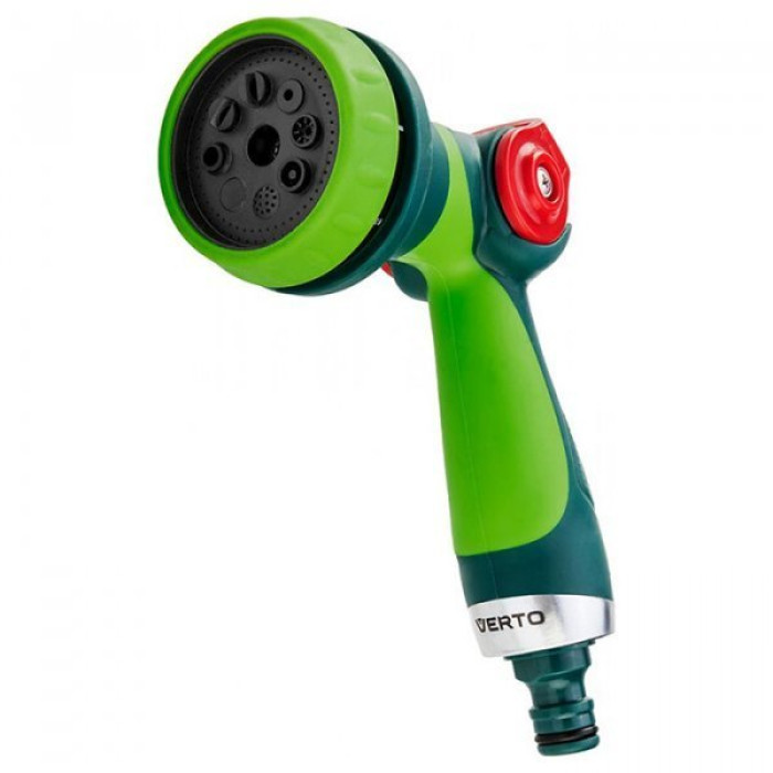 Verto Зрошувач ручний, пістолетний, 1/2"-3/4", 8 функцій, плавне регулювання напору води великим пальцем, тримач двокомпонентний