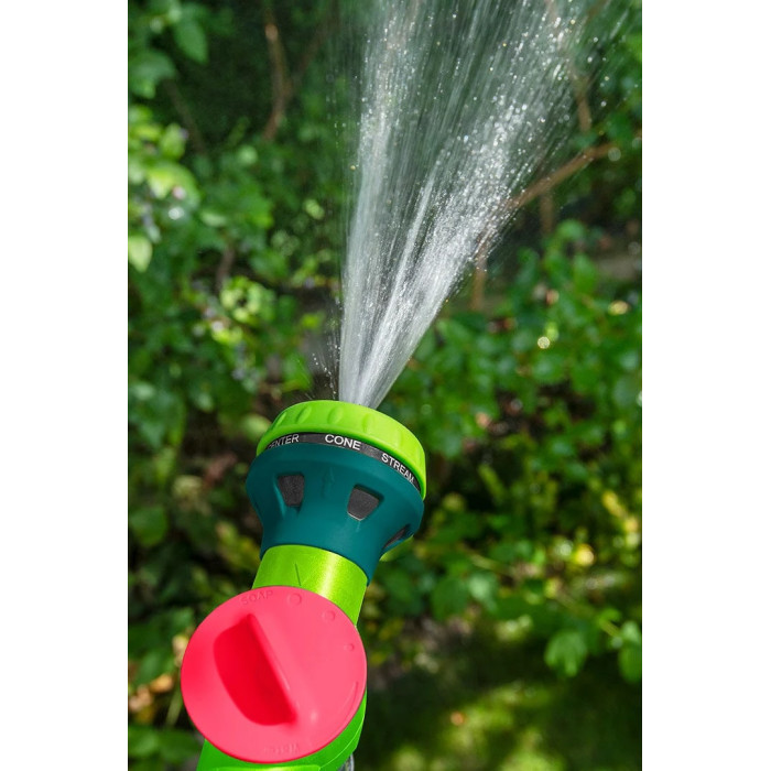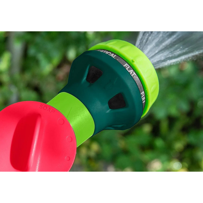 Пістолет-розпилювач VERTO 15G715 - це інструмент з вбудованим балончиком і пінним розпилювачем, оснащений 8-функціональною плавно регульованою системою розпилення. Керування великим пальцем дозволяє швидко вибрати тип, силу та функціональність розпилення. Чітке маркування на розбризкувачі полегшує вибір правильного режиму.