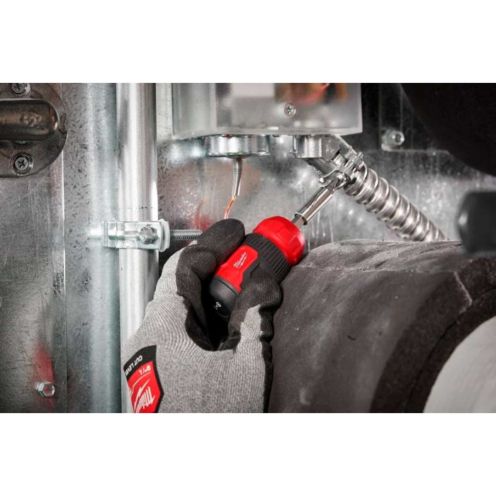 Milwaukee 4932492807 — викрутка-бітотримач із двокомпонентною рукояткою та набором із 8 змінних насадок: PH1, PH2, PZ1, PZ2, T15, SL 0,6×4,5 і SL 1,2×6,5 мм. Підібраний набір охоплює найпоширеніші типи кріплення для монтажних, електромонтажних і побутових ремонтних робіт. Двокомпонентна рукоятка Milwaukee з м'якою гумовою накладкою забезпечує надійний хват і знижує втому при тривалому використанні. Насадки зберігаються безпосередньо у рукоятці.