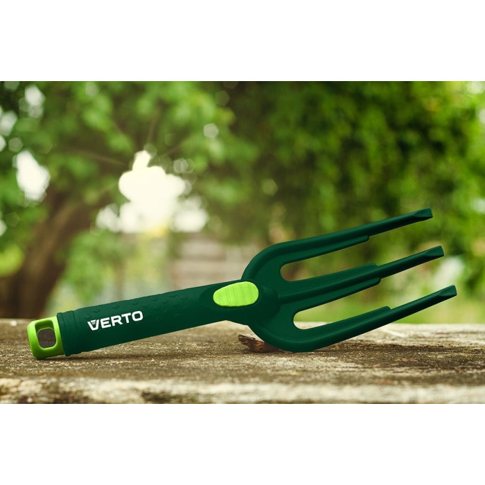 Садові вила Verto 15G412 — це зручний ручний інструмент для обробки ґрунту, пересадки рослин та видалення бур’янів. Компактні розміри та мала вага роблять їх ідеальними для точної та акуратної роботи на клумбах і в горщиках.