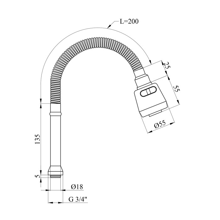 Вилив для змішувача гнучкий Kroner KRM - C801 два режими