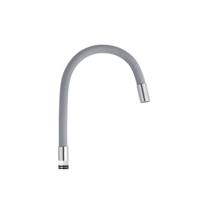 Рефлекторний вилив Kroner KRM - ESG802RGE призначений для встановлення на корпус змішувача. Діаметр підключення 23 мм з ущільнювальними кільцями, що забезпечують максимальну герметичність з'єднання. Виготовлений із нержавіючої сталі із силіконовим покриттям сірого кольору. Завдяки гнучкій конструкції виливу можна встановити довільну висоту.