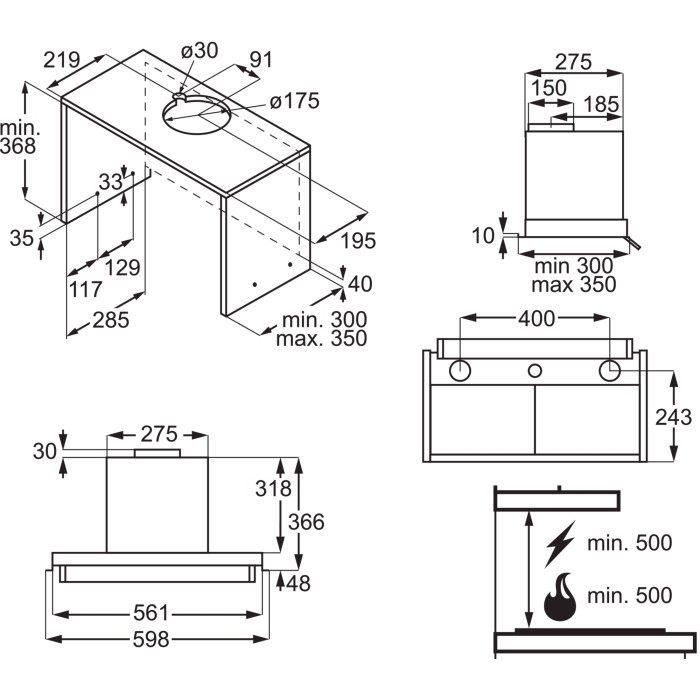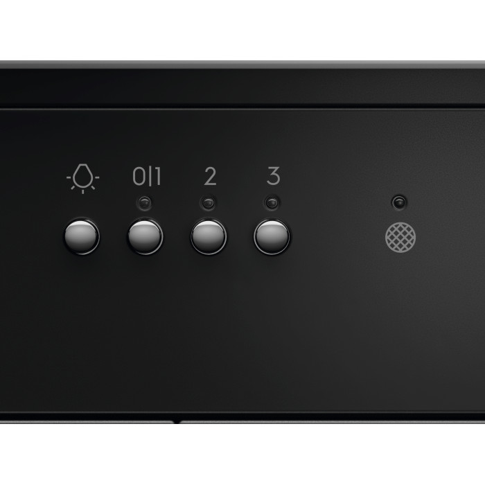 Electrolux LFP516K — стильна повністю вбудована витяжка шириною 60 см у глибокому чорному кольорі з продуктивністю до 600 м³/год (інтенсивний режим). Оснащена електронними кнопками, LED-підсвіткою 2×3 Вт, індикаторами забруднення жирового та вугільного фільтрів, а також працює як у режимі відведення, так і рециркуляції (вугільний фільтр окремо). Тиха на повсякденних швидкостях (55–66 дБ), ідеально підходить для сучасних кухонь з острівними або вбудованими шафами, де потрібна максимальна непомітність і ефективність.