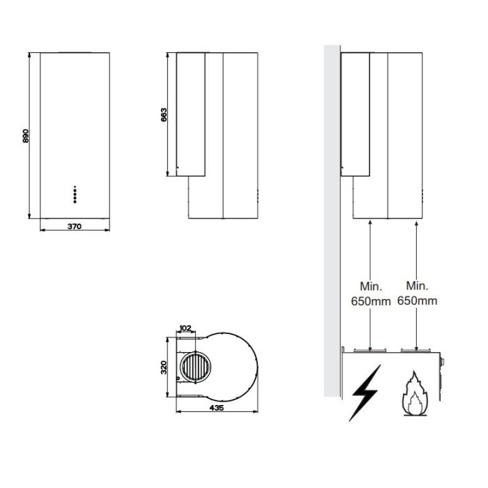 Витяжка оригінальної циліндричної форми призначена для настінного монтажу над невеликими варильними панелями (ширина приладу 37 см). Корпус моделі виготовлено з нержавіючої сталі, його висота становить 89 см. Оснащення витяжного пристрою мотором EVO сприяло підвищенню продуктивності та зниженню рівня шуму. У даній моделі передбачена можливість установки виносного мотора, який може бути розташований в підсобному приміщенні або зовні.