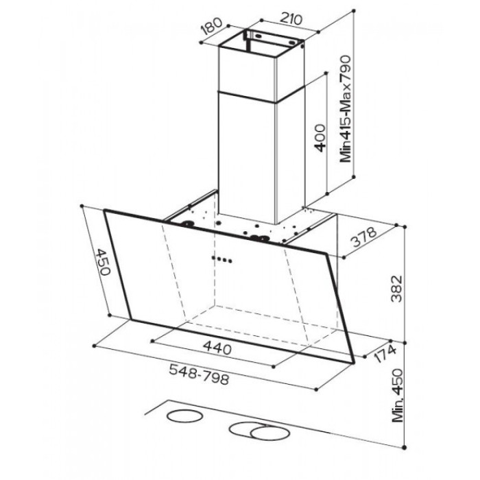 Вытяжка имеет ширину 55 см, что делает ее компактной и идеально подходит для кухонь с ограниченным пространством или для небольших размеров кухонь. Она имеет наклонную форму, что придает стильный и современный вид кухне пользователя. Также имеет черный цвет, который добавляет элегантности и контраста дизайну кухни. Вытяжка оснащена встроенным LED-освещением, которое дает достаточно света на рабочей поверхности кухни. Вытяжка использует мощный вентилятор и эффективную систему фильтрации, чтобы эффективно удалять вредные вещества, дым и запахи с кухни, обеспечивая свежий воздух в помещении.