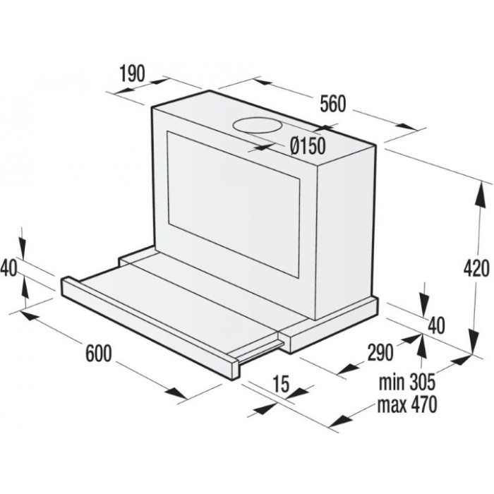 Витяжка Gorenje вбудовувана, 60см, 578м.куб/год, нерж
