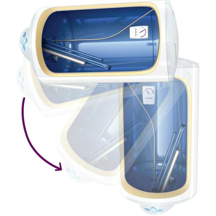 TESY Anticalc REV 100 – електричний бойлер об’ємом 100 літрів з подвійним сухим ТЕНом, який працює тихо, не накопичує накип і легко обслуговується. Завдяки технології PISTON EFFECT пристрій підвищує ефективність використання гарячої води до 15%. Ізоляційна система INSUTECH зменшує тепловтрати, а зовнішній регулятор із ECO-позицією сприяє енергозбереженню.